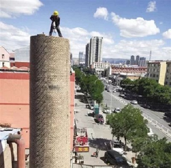 ②煙囪人工拆除方法:采取高空攀爬的作業(yè)方式登高到煙囪頂部,用拆除工具集合大錘、千斤頂進行簡體拆除,所拆磚塊要往煙囪內(nèi)部(或外壁)著落,在拆除時煙囪底部還要做好安全防護措施,預(yù)防有拆除的殘留磚塊或廢物高空墜落,具體要在煙囪上搭建一個安全平臺,這樣可以讓不小心墜落的殘留磚塊或廢物掉在安全平臺上,從而達(dá)到安全拆除的目標(biāo)。