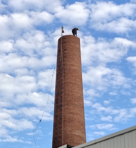 ②煙囪人工拆除方法:采取高空攀爬的作業(yè)方式登高到煙囪頂部,用拆除工具集合大錘、千斤頂進(jìn)行簡(jiǎn)體拆除,所拆磚塊要往煙囪內(nèi)部(或外壁)著落,在拆除時(shí)煙囪底部還要做好安全防護(hù)措施,預(yù)防有拆除的殘留磚塊或廢物高空墜落,具體要在煙囪上搭建一個(gè)安全平臺(tái),這樣可以讓不小心墜落的殘留磚塊或廢物掉在安全平臺(tái)上,從而達(dá)到安全拆除的目標(biāo)。