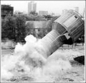 水塔、煙囪破壞性的拆除:機(jī)械拆除煙囪方法是指使用大型機(jī)械,如挖掘機(jī)、重錘機(jī)等對建(構(gòu))筑物實(shí)施接替和破碎的方法。接卸拆除方法的特點(diǎn)是: