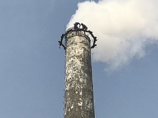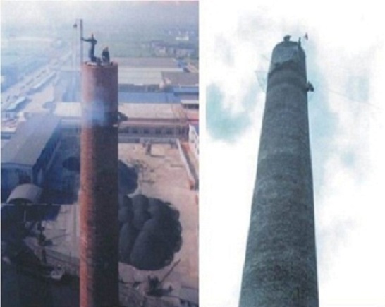 上圖展示的煙囪拆除加高項(xiàng)目是我司13年中旬完成的項(xiàng)目。該公司一共三座煙囪,其中兩座拆除,留下這座繼續(xù)使用,經(jīng)過(guò)加高后的煙囪已經(jīng)正常投產(chǎn)。