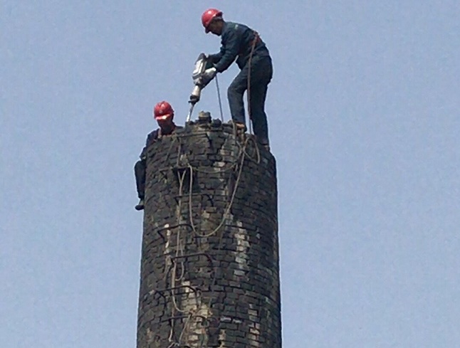 鍋爐房磚煙囪45米高一座,進(jìn)行人工拆除,包括運(yùn)送垃圾等。