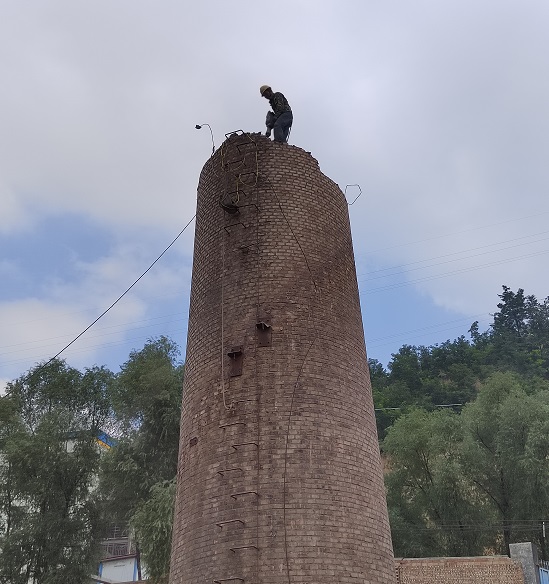 2、檢查需要拆除的煙囪周邊情況,包括離得近的建筑物。高壓電線,普通的照明線路網(wǎng)線地下管道等等,做好防護措施,防止破壞周邊設(shè)施,設(shè)置好安全通道,保證周邊人員安全,當(dāng)然最好是禁止通行的。