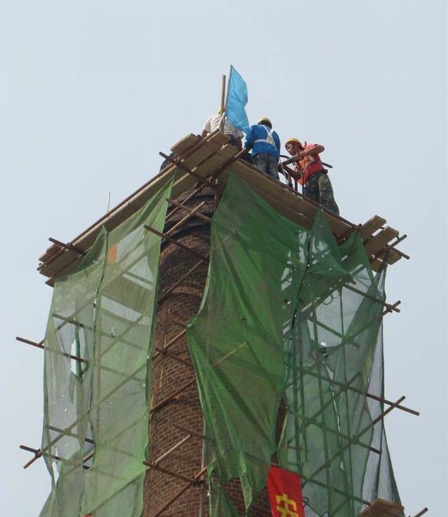 2、對(duì)煙囪拆除工程周邊的環(huán)境進(jìn)行施工前清理,做好隔灰墻等煙囪拆除工程所需要的準(zhǔn)備工作。