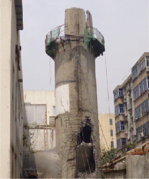 3、煙囪拆除前,應(yīng)仔細(xì)檢查爬梯腐蝕程度,不安全的地方進(jìn)行加固,以便施工上下。