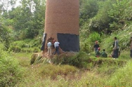 煙囪拆除前,第一次攀爬煙囪外壁鋼爬梯時,應認真仔細搖擺爬梯緊固性與腐蝕程度,廢棄的煙囪多年不用,不安全的地方開展加固,便于工程施工上下。磚煙囪拆除時保險繩應系在爬梯拆除段的底端,另外應特別注意拆除的廢磚渣不可以沖擊保險繩,并應有雙保險繩。鋪裝在頂部的落腳木板其厚度不可以小于125px。應當選用用堅固結(jié)實的材料制造。磚煙囪拆除工程時一定要了解土質(zhì)和地下水位情況,挖機通常在地下水位0.8m以上挖土,防止機械自重往下沉。
