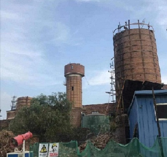 1、拆除煙囪高度達(dá)60米,第1層平臺(tái)向上部分筒身為磚砌結(jié)構(gòu),筒身腐化嚴(yán)重,且頂口多處開裂,裂縫寬度4-10厘米不等,隨時(shí)有崩塌危險(xiǎn),固采用人工拆除時(shí)需在煙囪頂部2米做加固處理,為避免較大震動(dòng)人工拆除采用的工具主要為電錘,震動(dòng)相對(duì)較小,進(jìn)度相當(dāng)緩慢,工作量巨大。