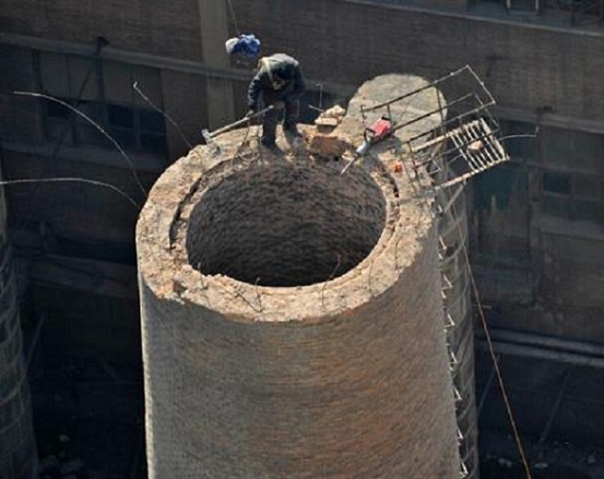 2、由于煙囪人工拆除在施工期間不能停產(chǎn),處于不停產(chǎn)狀態(tài)下施工。
