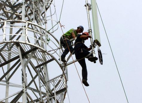 3、再拆天線支架和上面平臺,每拆好一組平臺就下放。上面平臺拆好后,才能拆除塔體構(gòu)件副材和主材,施工人員嚴(yán)禁站在已松螺栓的構(gòu)件上。