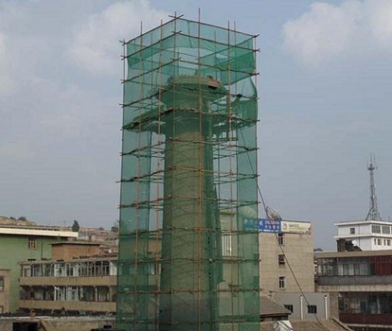 2、煙囪周邊全部搭設(shè)安全網(wǎng),拆下的小塊不得超過25cm×25cm左右。